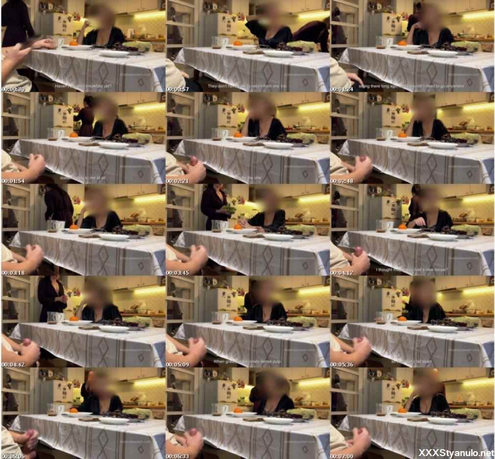 My Husband Jerking Under A Table Front Of My Mom And I Right At The Kitchen. with exquisite babe Anastasia Ocean